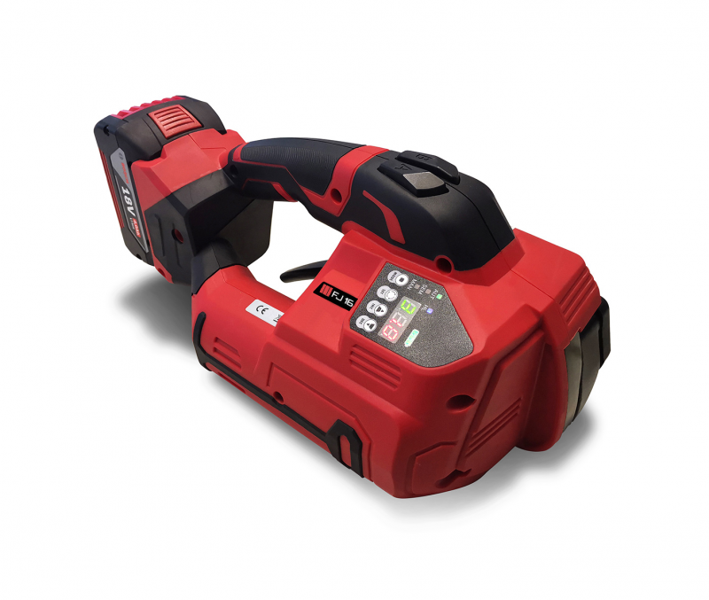 Flejadora de batería El sistema de flejado a batería FJ16-19 está diseñado específicamente para ofrecer al operario un uso ágil y cómodo, posicionándose como líder en el sector del flejado.
